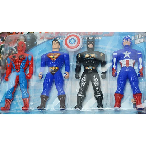 Pachetul contine patru figurine impresionante si bine realizate, reprezentandu-i pe Spider-Man, Batman, Superman si Capitan America.