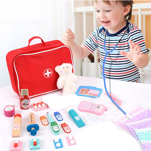 Trusa de jucarie dentist din lemn incurajeaza invatarea prin joc, dezvoltand abilitatile motorii fine si stimuland creativitatea.