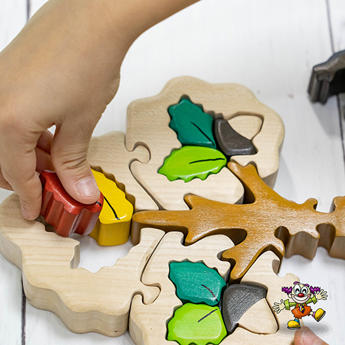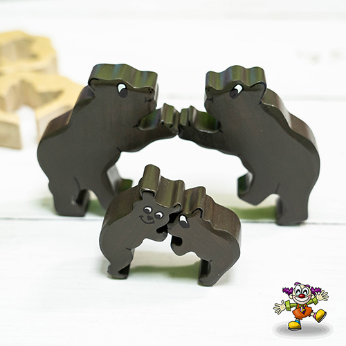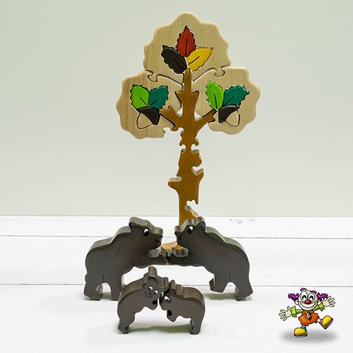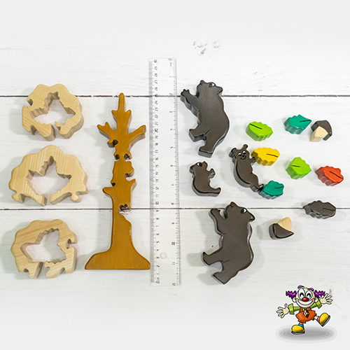 Puzzle din lemn Stejar cu ursi, 17 piese